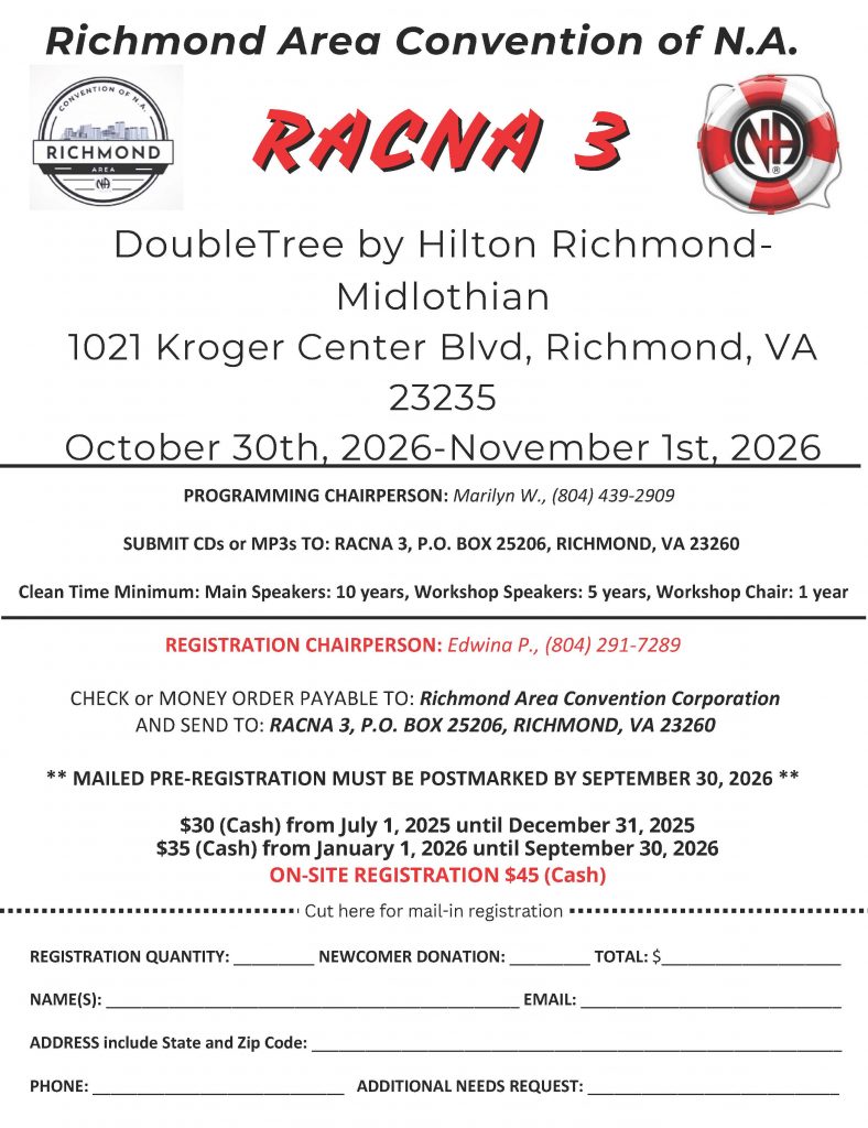 RACNA 3 Registration and Hotel – October 30th – November 1st, 2026